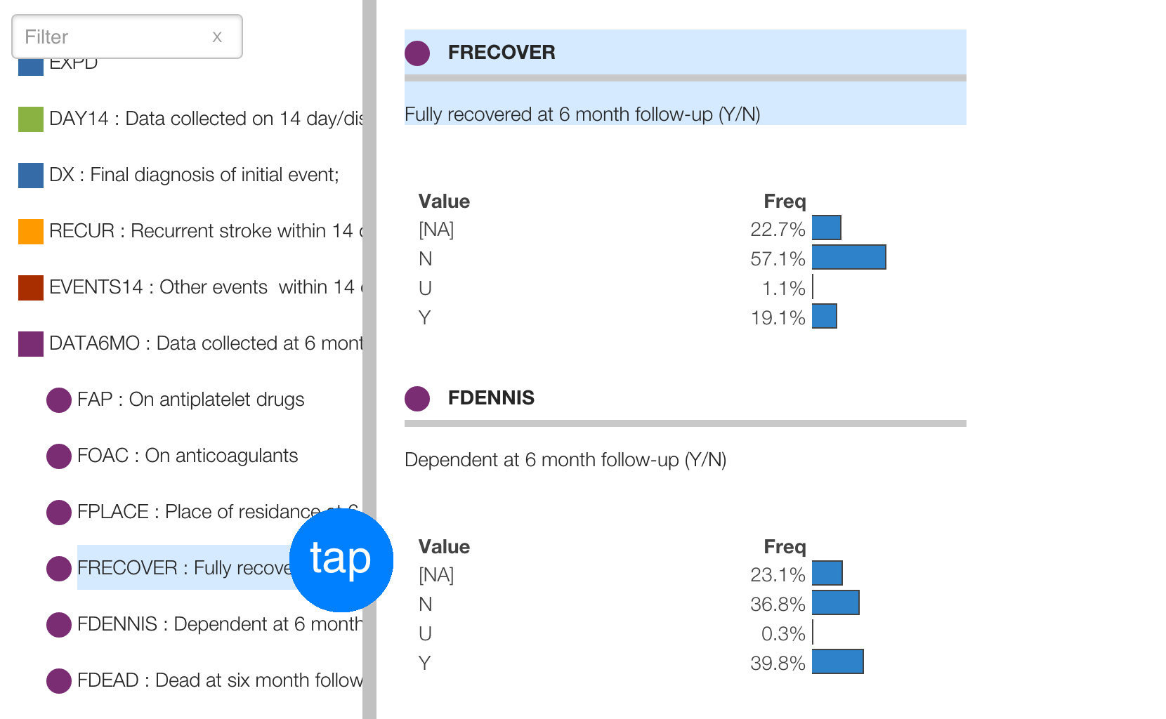 With hundreds or even thousands of questions in a survey, you want to quickly navigate the data. Now you can locate an element on the right hand side by double-clicking (or double-tapping) on it in the tree.