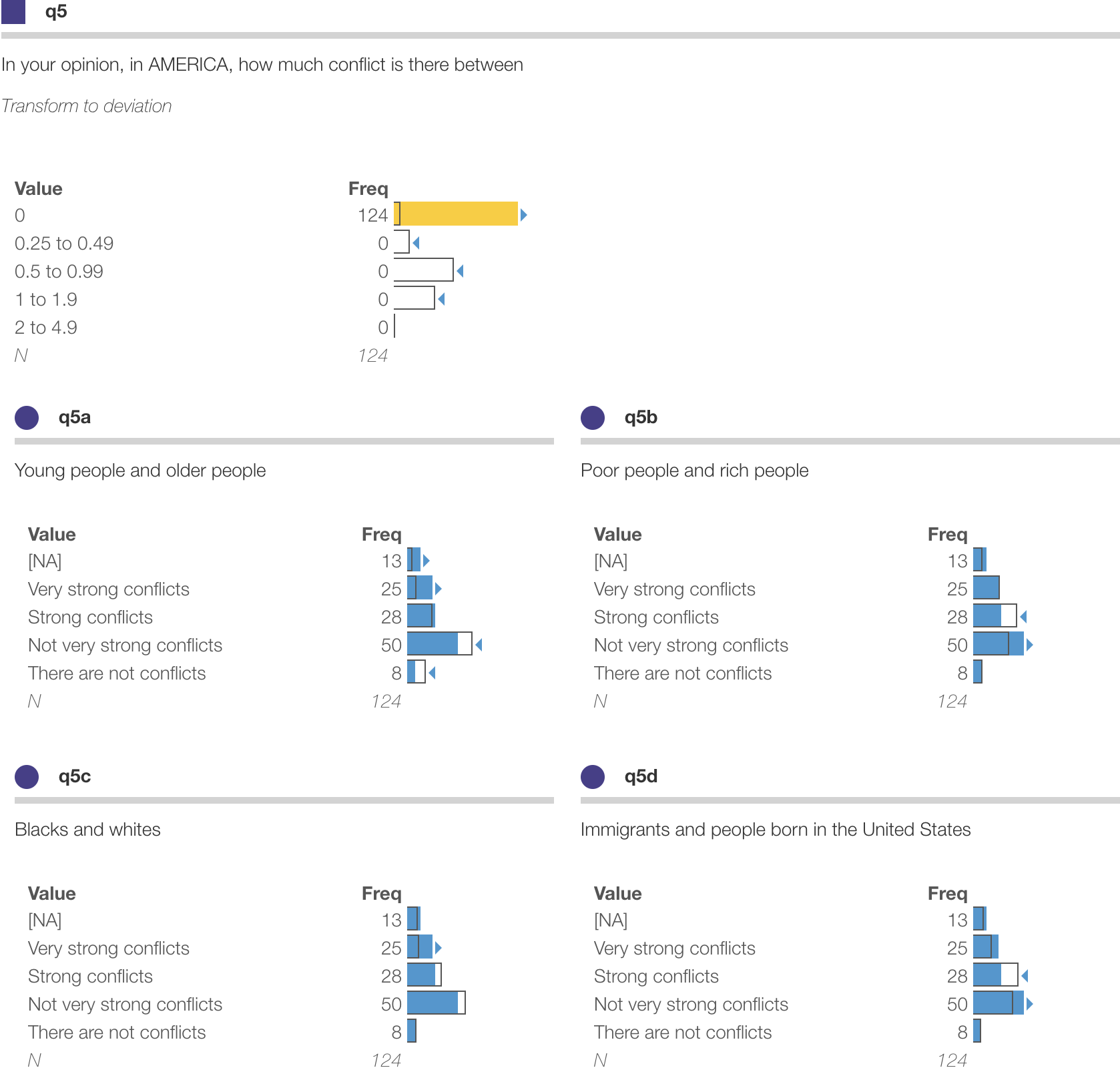 We could click to find respondents who answered any one response in Q5a, Q5b, Q5, etc. But otherwise it's not obvious who gave the same answer to each question.