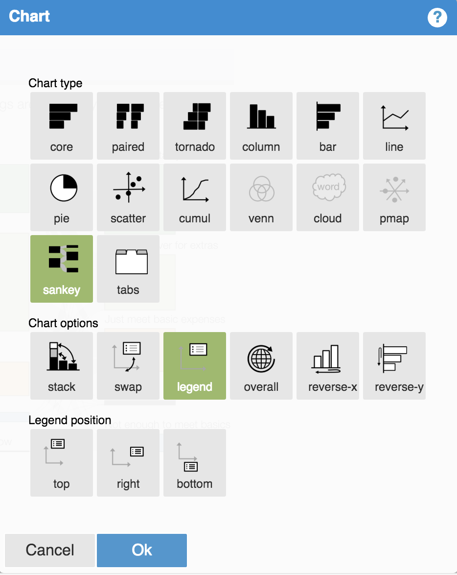Press the square edit icon to bring up the chart dialog, and choose "Sankey":