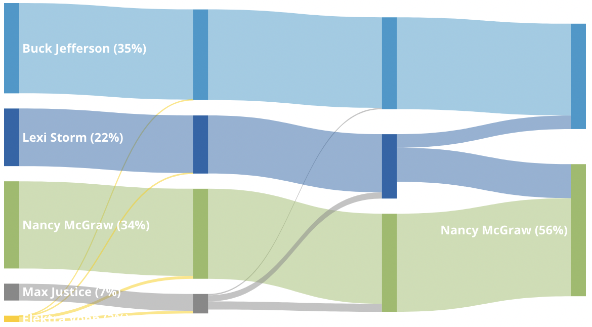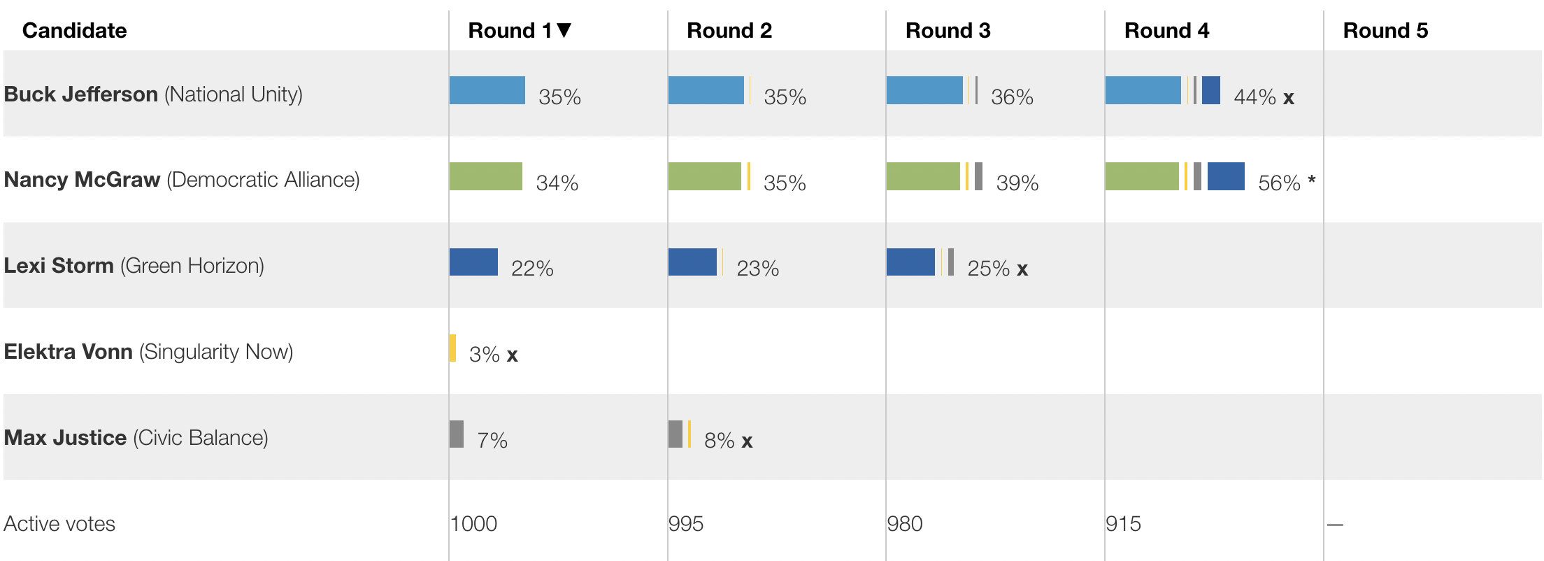 - Exhausted ballots shown explicitly to clarify drop-off.